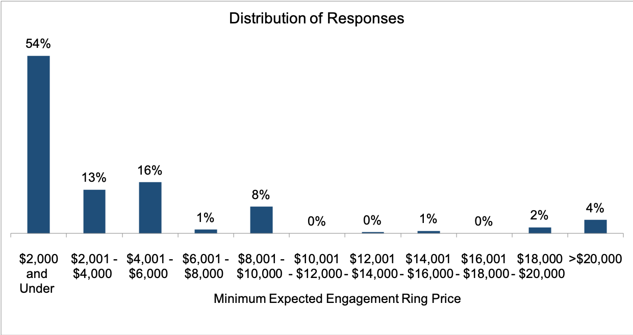 54% of all the respondents expected a ring worth $2,000 or less. This means that even for women with high-salaried boyfriends, many of them had low expectations for the ring.