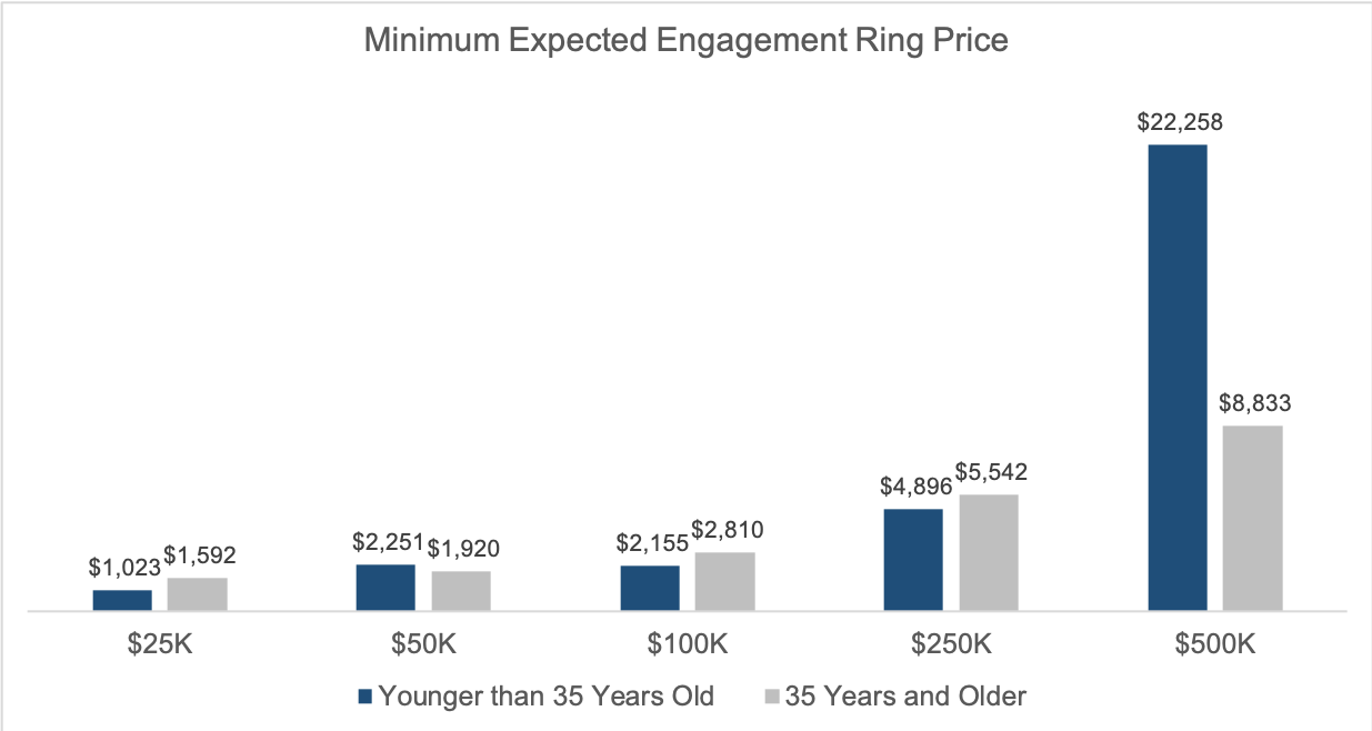 Women younger than 35 expected a much more expensive ring on average compared to women 35 years and older.